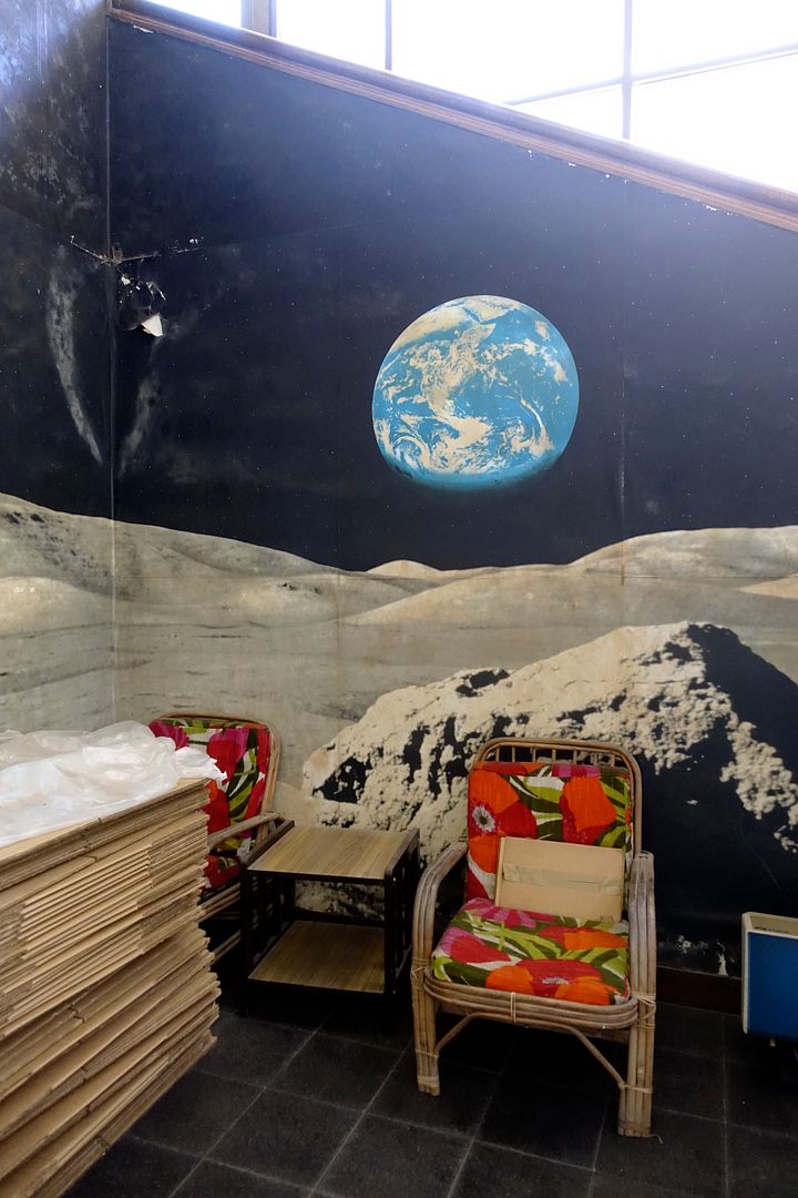 The great Moon background is the first thing a visitor sees when he enter, before taking the stairs to the first floor.