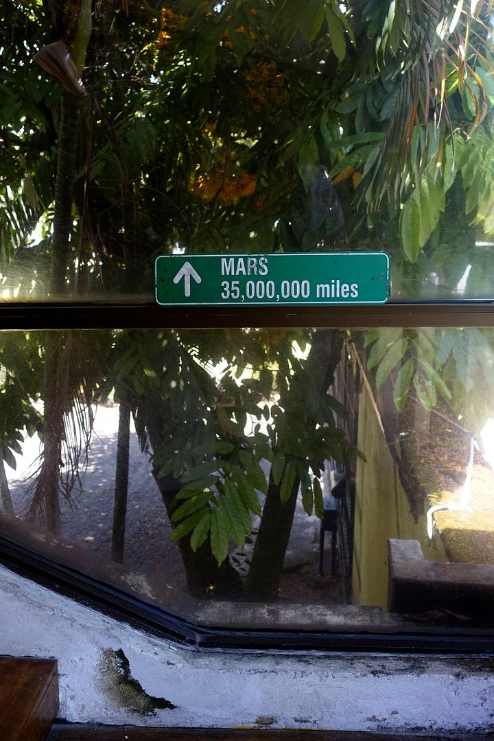 A funny sign that you can't miss climbing the stairs "Mars: 35.000.000 Miles" !