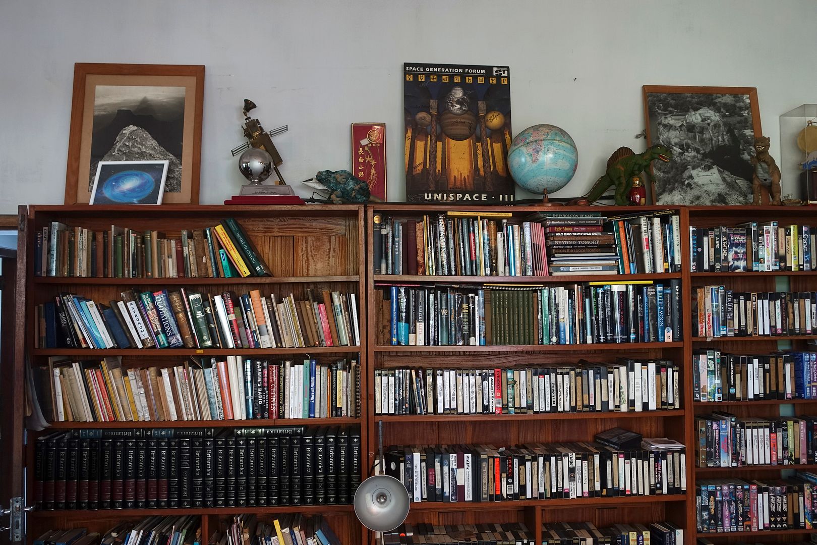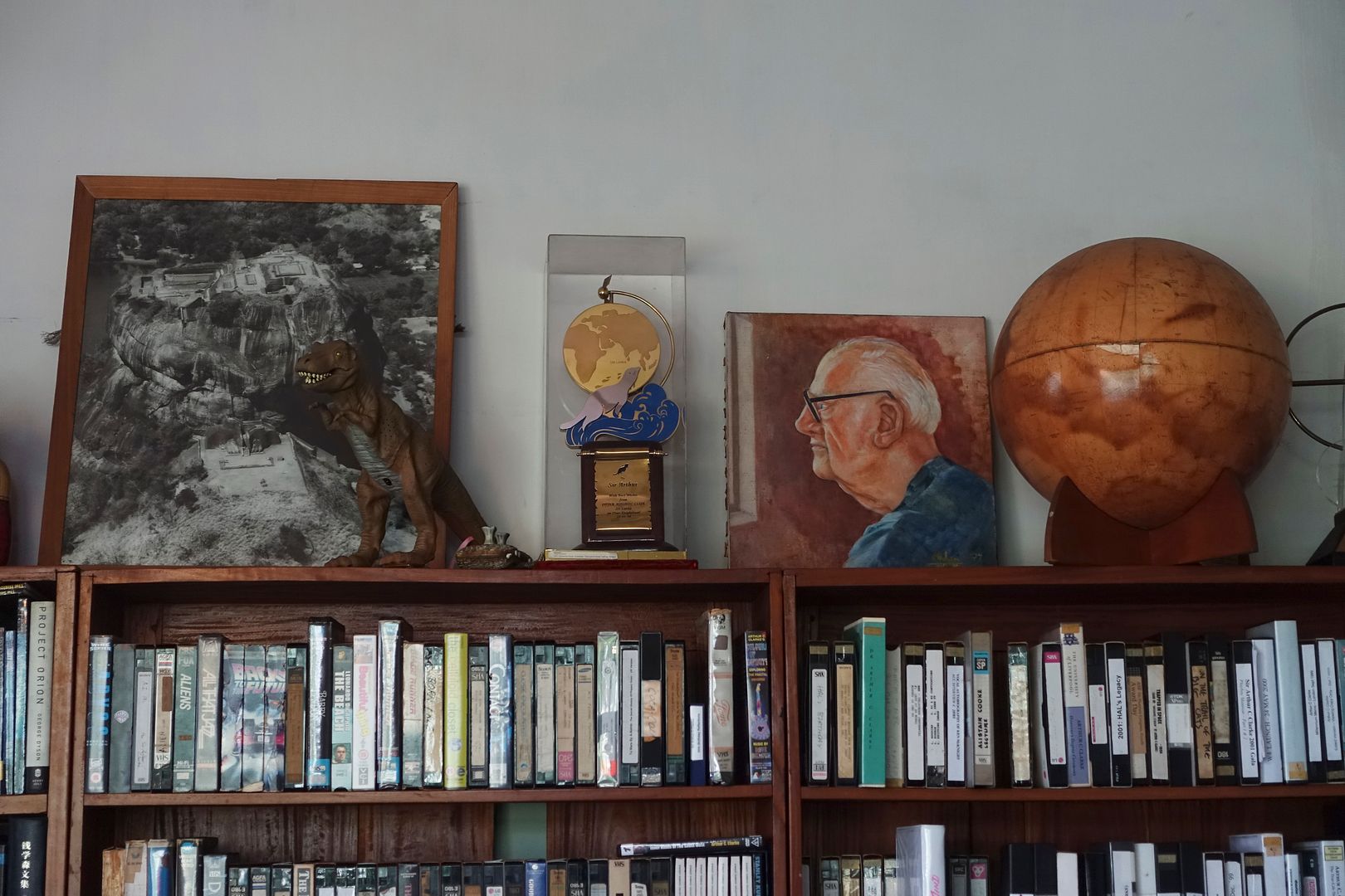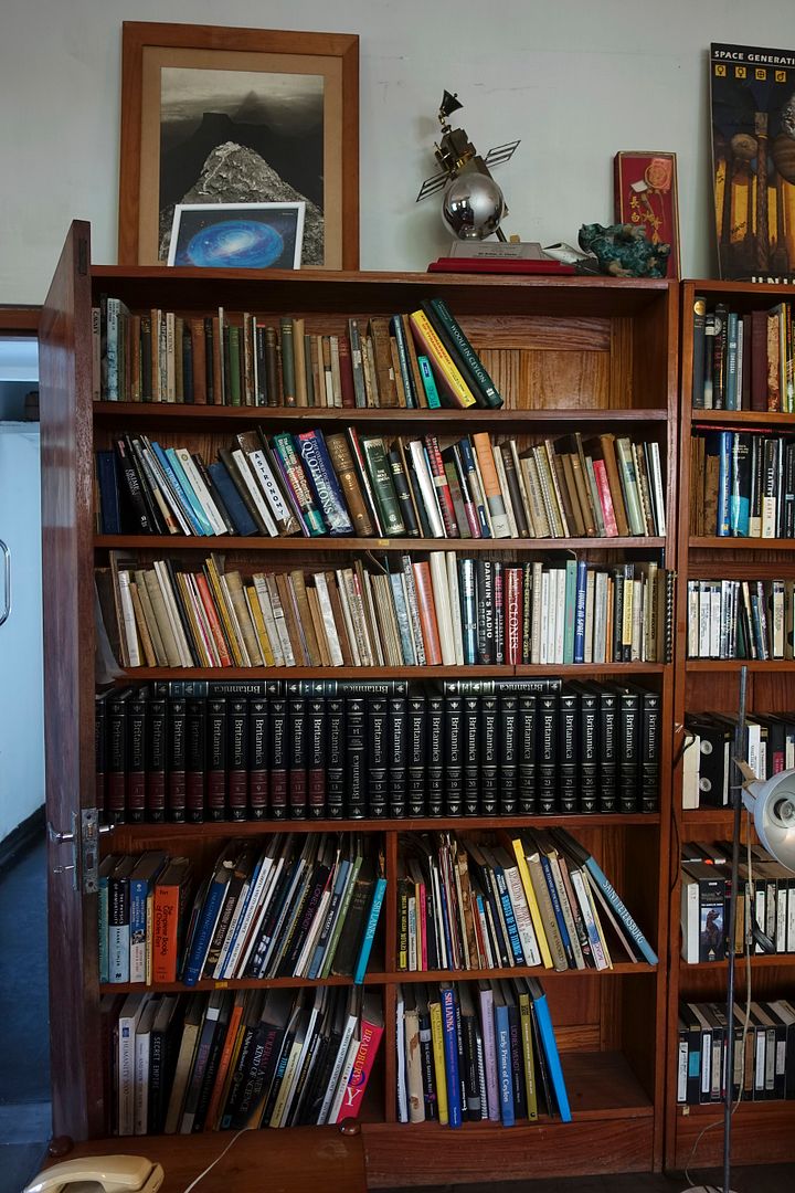 In this last part of my pictorial report inside Arthur C. Clarke's home at Colombo we'll start by having a look at the biggest shelves located on the right where we find books about space, the complete Encyclopedia Britannica and his personal collection of VHS videos. As usual, don't hesitate to click on each picture to be able to zoom and explore them in details.