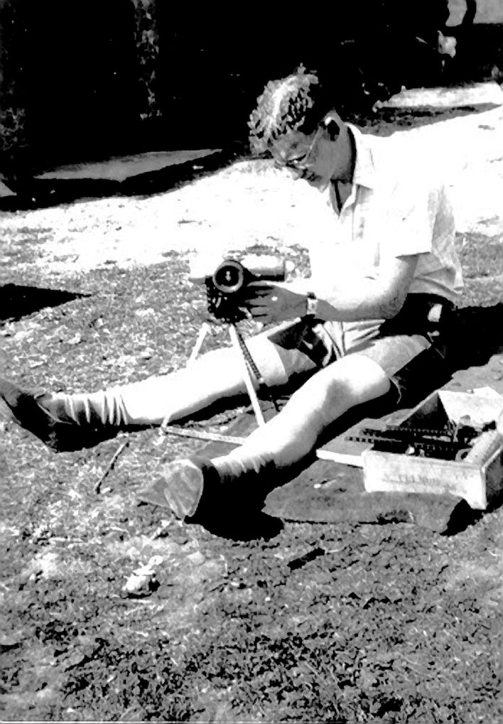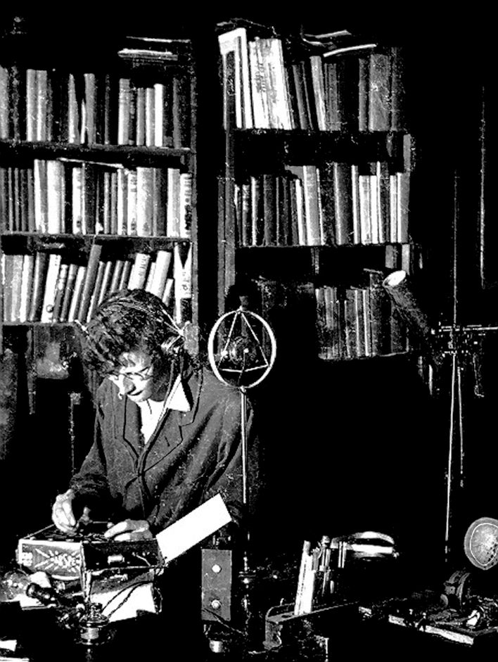 In the 1930's, Arthur C. Clarke at work on his camera and a radio.