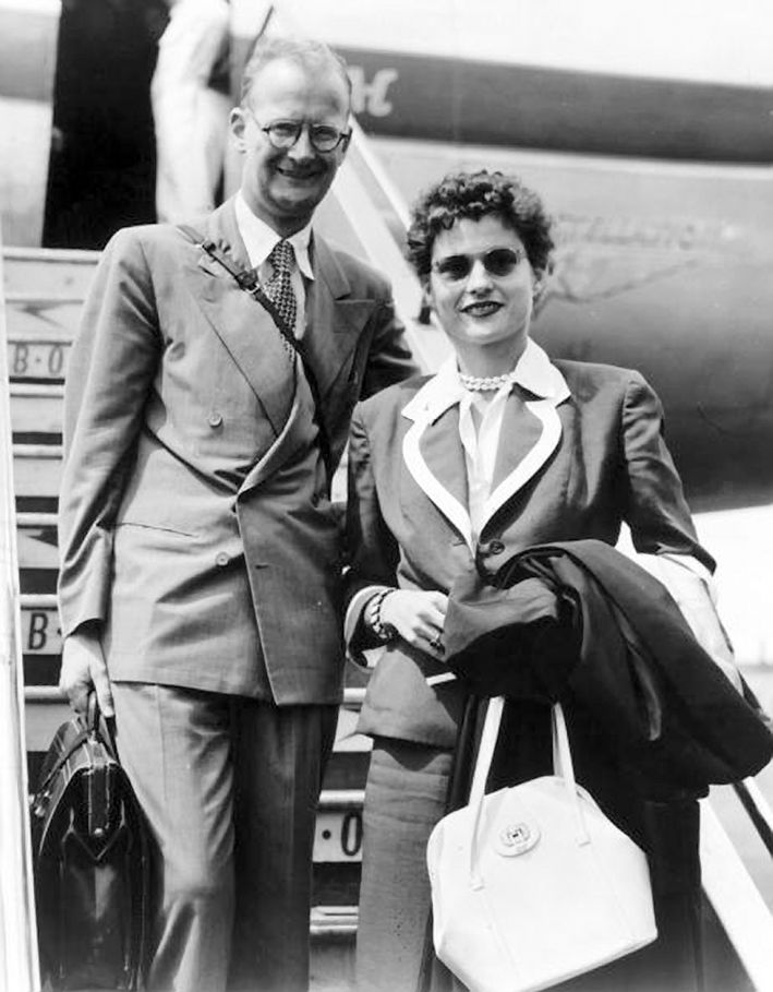A rare picture - may be the only one - of Arthur C. Clarke with his wife Marilyn Mayfield, a 22-year-old American divorcee with a young son. They met on a trip to Florida in 1953 and separated permanently after six months, although the divorce was not finalised until 1964.